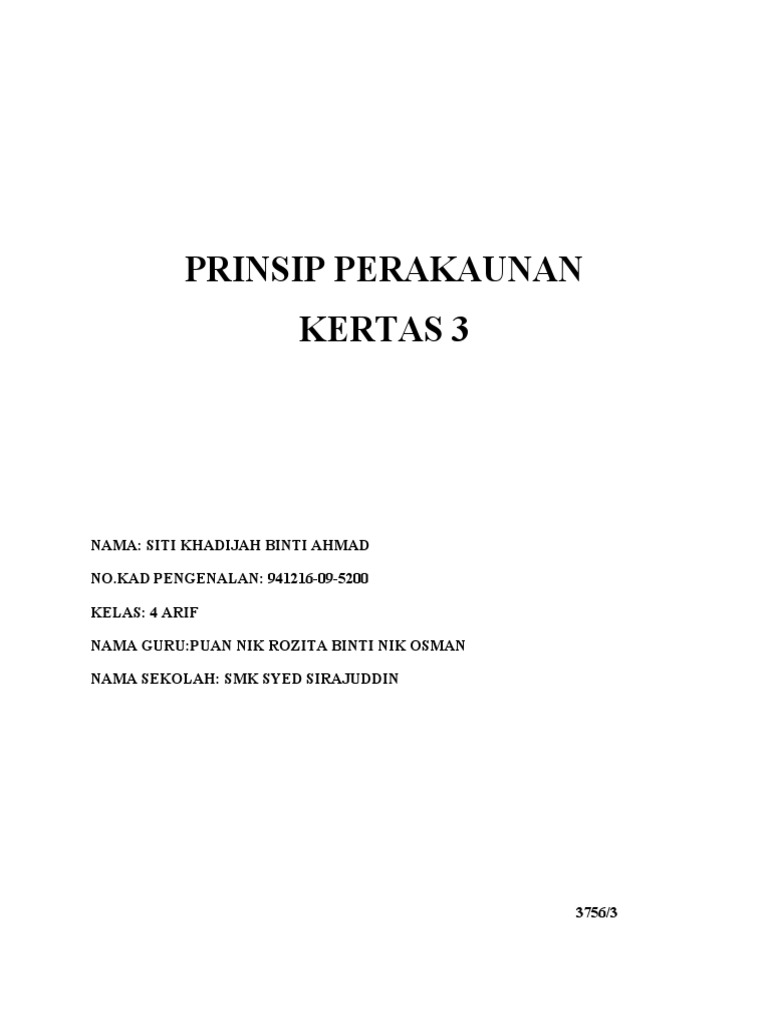 Prinsip Perakaunan Kerja Kursus Spm